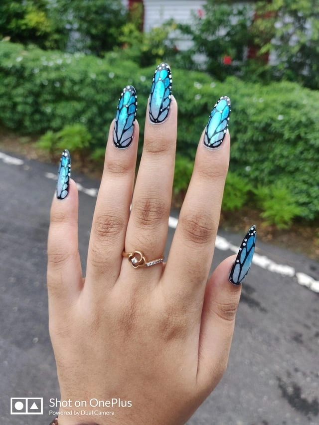 Blue Butterfly Wing Nails