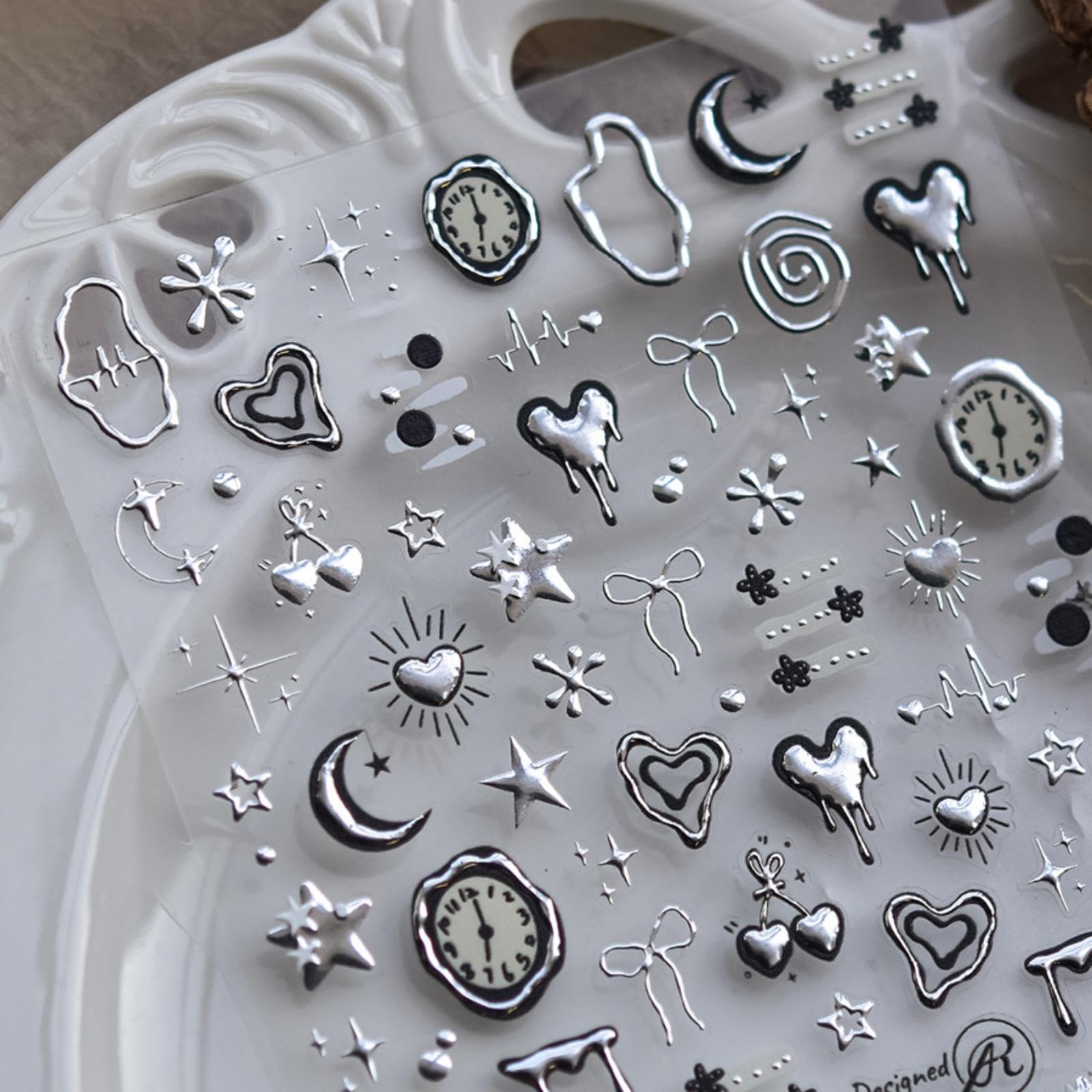 NBNTGH Silver Heart & Star 5D Nail Stickers